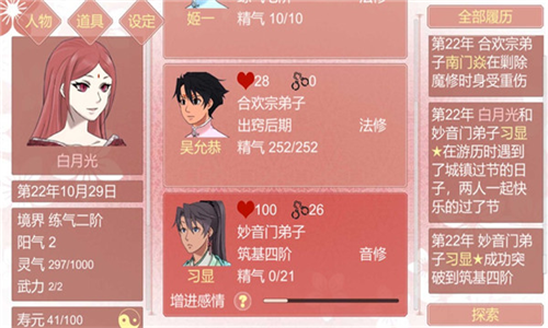 某某宗女修修炼手札内置修改器版是一款角色扮演类文字放置手游,游戏偏向乙女修仙手游,简约清爽的粉红色界面主题,加入了大量有趣的故事剧情,全新的玩法系统,为玩家们打造了一个全新的修仙世界。游戏中玩家将要扮演一位女修士在这个世界中进行探索冒险,在这里你将会邂逅各种各样的美男修士,而你要做的就是通过吸取对方的阳气来获得修为的提升,不断的提高自己的武力值,征服越来越多的人,简而言之就是玩家扮演某某宗的女(妖)修(女)选择撩谁和思考怎么在撩了多人的情况下不翻车。感兴趣的朋友们欢迎下载体验!