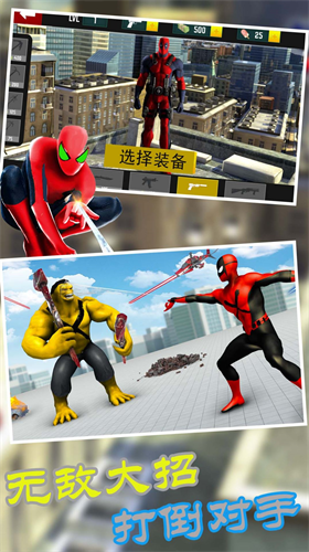 3、为你的蜘蛛侠角色搭配各种超级武器才行,才可以拥有最不错的游戏过程。