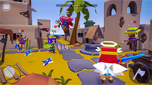 1、这是一款玩法非常简单的大作战游戏,玩家通过投掷武器攻击对手。