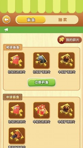 3、盲盒中有多种多样的碎片,集齐碎片就可以合成矿场或红包,等级越高的盲盒,所能得到的碎片数量越多。
