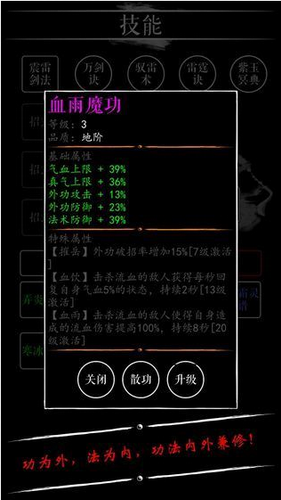 3、纵横交错的经脉和各种各样的心法等你来领悟,并且可以自由的挑选搭配你的最强心法经脉。