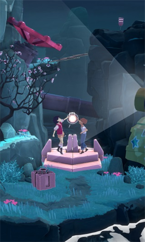4、Arina和Frendt都有自己的个性和技能,在游戏设计和行为上都有体现。Frendt不像Arina那么健壮大胆,他身材瘦长,戴着眼镜,对电子产品的兴趣要大得多。他能够与编钟互动,编钟的作用很像开关,可以让你在环境的某些部分向前移动时间,改变一组选定的对象,同时保持游戏角色不动。Arina是一个外向而热情的人,通常在前面带路,当她不能得到吸引她注意力的东西时,她就会生气。她提着一盏灯笼,点亮后可以驱散可能挡住去路的乌云。