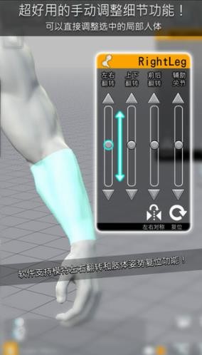 5、Easy Poser 模特所有关节都可以方便快捷地手动调节。选中的操作部分支持局部放大、局部复位、左右翻转或对称等超越一般虚拟人体app的强大功能!请您尽情体验远超鼠标操作的畅快感吧!