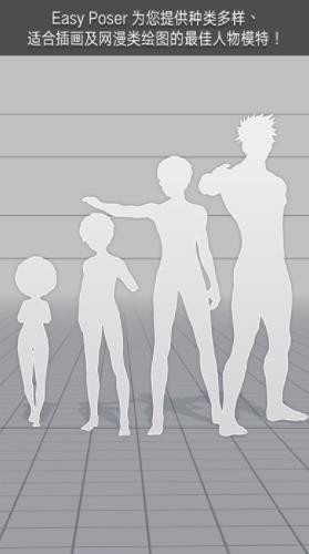 6、常规虚拟人体app的8头身比例模特在漫画、游戏、插画等领域并不常用。Easy Poser 提供了实用性更强的6头身(多种体型)男、女人体模特。[3头身Q版人体模特准备中。]