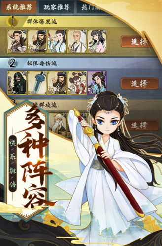 2、戏中每种英雄都有专属的属性效果,比如厉蛛儿能让怪物中毒、梅炽峰有概率使敌人一击毙命、张三丰能使怪物的移动速度变慢等等。