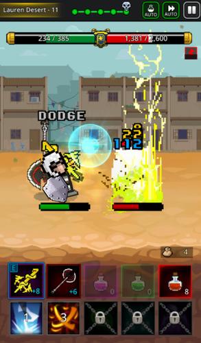 1、卡通休闲的像素式游戏画风,在地牢世界不断冒险挑战,提高等级战力。