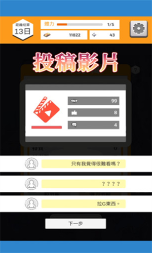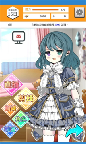 通过直播和剪辑获得资金和点数,训练可以提升自己的属性,让直播时更有利!