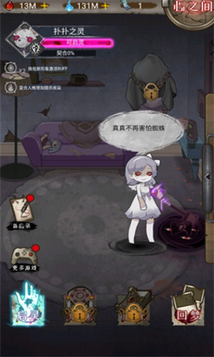 游戏中不同的肢体搭配能产生不同效果,并且游戏战斗方式休闲轻松,手指拖动触碰即可在各场景巡回击杀怪物。而游戏最有特点的玩法则是调戏萝莉的羁绊系统,你只需要通过游戏主页房间里的魔镜,进入羁绊系统,就可以和呆萌的萝莉真真进行互动,触碰真真,会有不同表情和语气!此外送礼物还能提高好感度,好感达到一定程度后能解锁部分服装。