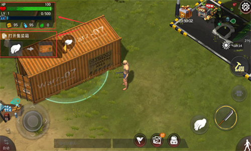 进入游戏后我们看到左上角显示的就是玩家的状态,包括HP、经验值、饥饿度、口渴度和感染度。