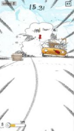 5、车道随机出现各种箱子,为武器道具,点击控制车辆撞击获得使用。