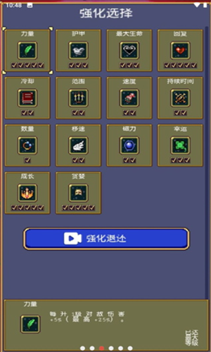 游戏的玩法很简单,就是简单的割草游戏,你将在地下城中利用各种武器击杀想你靠近的怪物。