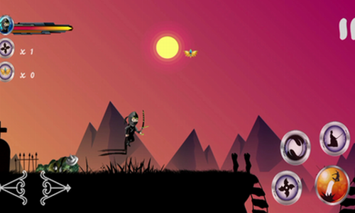 1、玩家在游戏中要操作着一个小忍者在树林中进行着跑酷