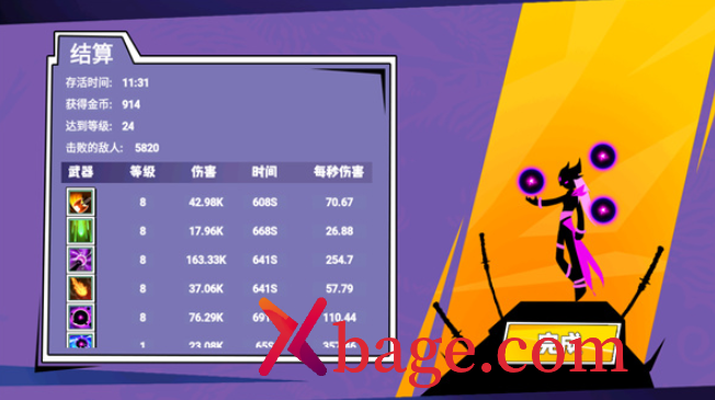 4、获取更多装备还能升级成超武,利用不同武器和技能对抗不断持续的敌人尝试完成战斗