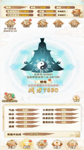 2、成为宗主:玩家可以成为宗主,自由建设门派,并且培养徒弟修道飞仙。