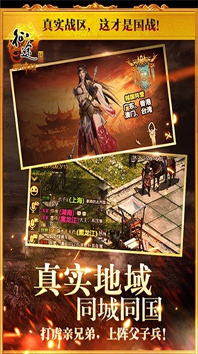2、真实战区,这才是国战,根据真实地域划分,同城同国!打虎亲兄弟,上阵父子兵。