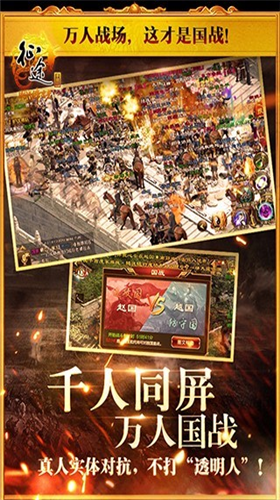 1、万人战场,这才是国战,十万人同服,万人真实战场,千人同屏战斗!真人实体对抗,不打“透明人”。