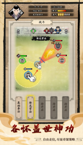 3、自由走位,尽显奇谋策略:各大门派闯荡江湖,弟子们各怀盖世神功,互相切磋博弈,而如何能立足于江湖成为顶尖的绝世高手?全靠个人独特打法:彰显奇谋策略、不断风骚走位。