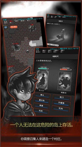 黑暗之龙破解版是一款RPG风格的角色扮演游戏,游戏以文字冒险为基础,玩家一开始出现在一座岛屿之中,岛上有无数可怕的怪物和危险的巨龙,玩家要召集一同流落在岛上的人群一起生存下去,收集资源维持存活,打造武器和工具保护自己,通过击败岛上的怪物让自己变强,与岛上的人一起合作击败巨龙,才能安全地逃离这座岛。
