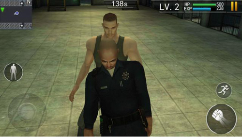 3、值得一提的是这款游戏只要开始任务就会有一个3分钟的时间限制,如果我们在3分钟内没有达到指定要求的话,就会招来一大堆狱警,结果就是GG,因为正常情况下开始的时候那些普通的狱警都没用武器的,但是招引来的狱警都会拿着警棍,而且生命值也会有很大的提升,最恐怖的是一次性会来3个狱警,这个是完全没有办法逃跑的,而且这款游戏普遍有一个特点,就是攻击都是锁定的,也就是只要那些狱警攻击了无论我们怎样都会直接受到伤害,所以想利用那种翻滚来躲避狱警攻击的小伙伴来说那样做是徒劳的,翻滚的正确用法就是为了配合潜行,而且使用翻滚整体来说移动速度会得到很大的提高,要是想要迅速逃离战场的话可以使用翻滚来迅速逃离战场。