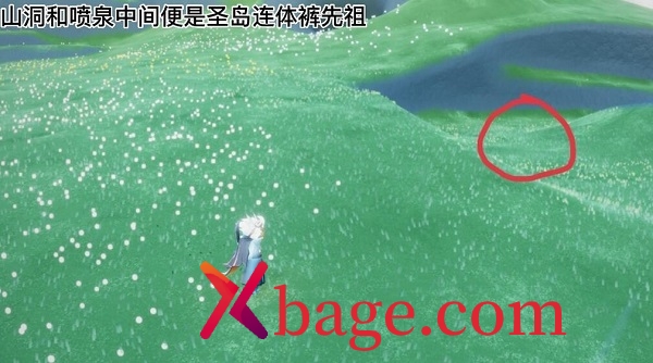 3、随后来到山洞口和喷泉中间的位置即可找到先祖。
