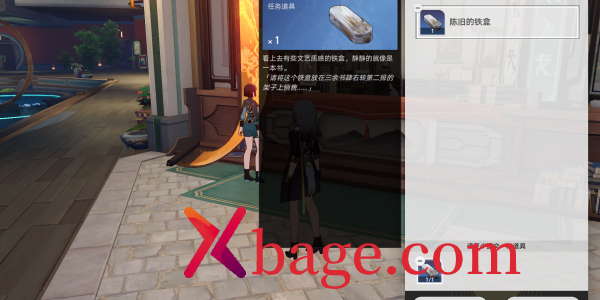 2、接着玩家需要找到下图NPC对话并将零件交给他,然后即可获得一个陈旧的铁盒;