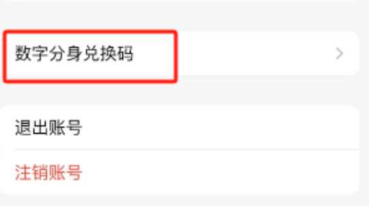 2、进入到设置的页面后,找到下方的数字分身兑换码点击进去。