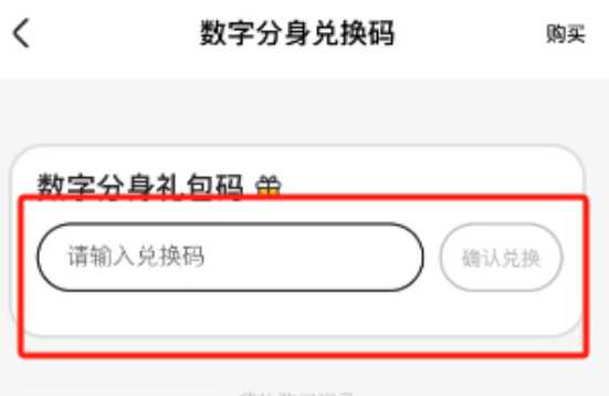3、最后用户在输入框中填写兑换码就可以成功兑换数字分身礼包了。