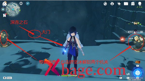 2、传送到第一处,激活四个冰元素方碑,解锁机关。
