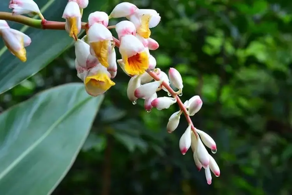 1、豆蔻是一种植物,它的花骨朵儿都是一串串的,看起来娇艳欲滴。