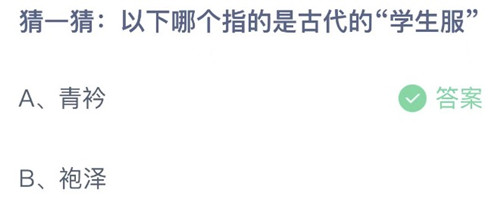 问题:猜一猜:以下哪个指的是古代的“学生服”?