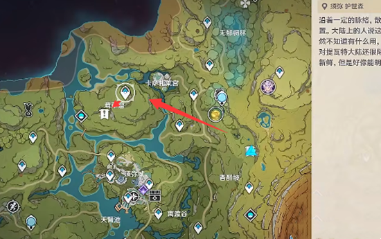 1、打开须弥城的地图,传送到护世森的锚点那里。