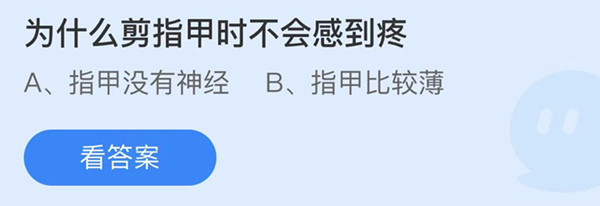 支付宝蚂蚁庄园小课堂8月30日的其中一个问题是:为什么剪指甲时不会感到疼?这道题考查了关于剪指甲的知识,下面一起来看一下蚂蚁庄园8月30日的正确答案吧。
