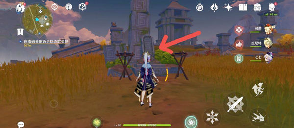 5、来到遗迹前往的圆盘那,找到第五块石碑。