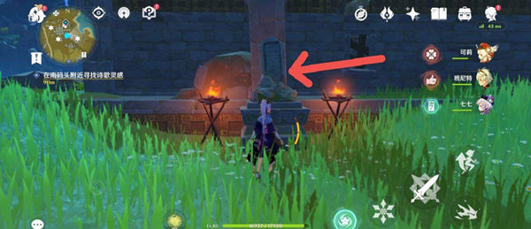 1、进入遗迹广场,绕后背后的火把那,找到第一块石碑。