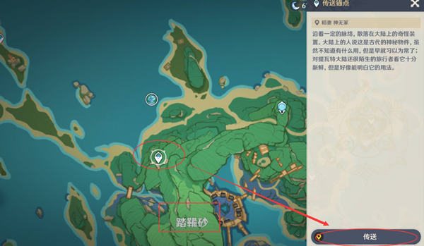 1、打开踏鞴砂地图,传送到上方的锚点那里去。