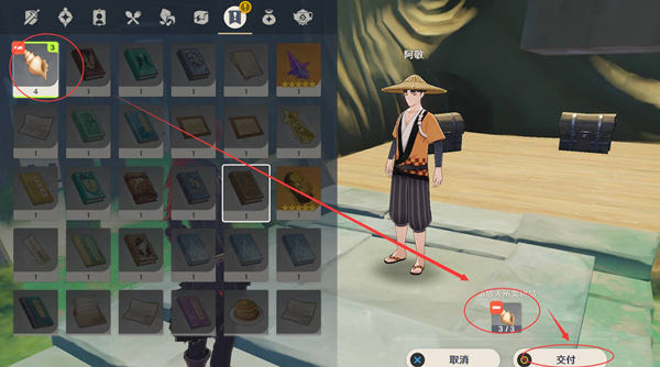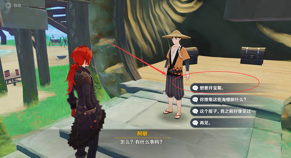 3、找到NPC阿敬,与之对话选择想要打开宝箱。