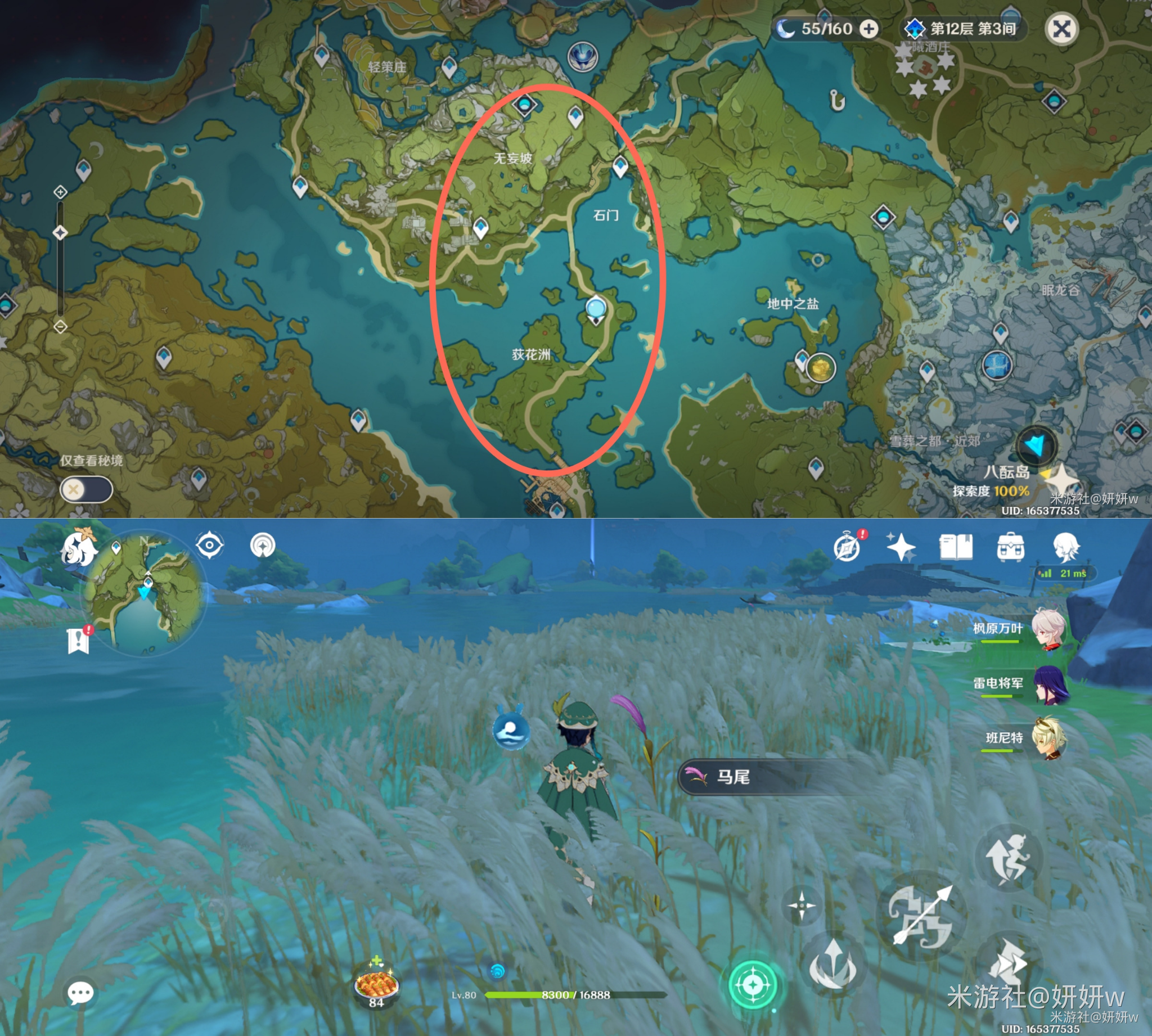 基本就在石门旁边的这块水域,紫色的芦苇。