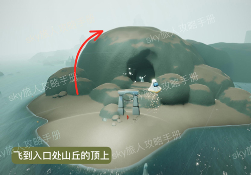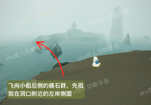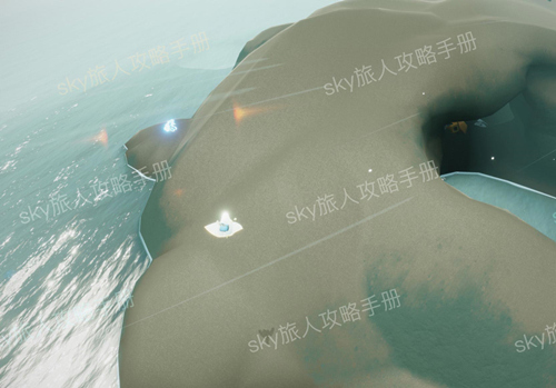 3、再朝着小船左边的礁石群飞过去,来到海边。