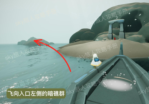 2、等船靠岸后,朝着左边的暗礁群飞过去。
