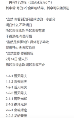 5、不要选两次1,要不然会在对应的两个结局里随机出一个。