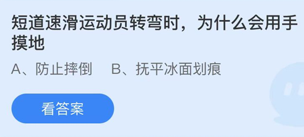 蚂蚁庄园2月13日的问题分别是:短道速滑运动员转弯时,为什么会用手摸地?高山滑雪比赛中,如果选手错过了一个旗门,需要回去重新穿越吗?以下哪项冬奥会项目,没有世界纪录?下面小编给大家带来问题的解答,还不清楚的小伙伴一起看吧。