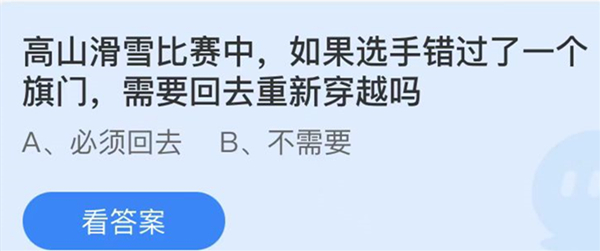 问题2:高山滑雪比赛中,如果选手错过了一个旗门,需要回去重新穿越吗?
