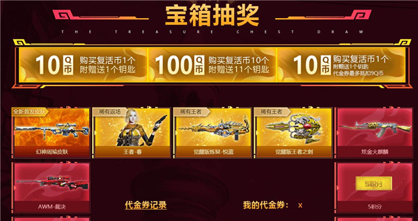 1、玩家进入活动入口,10Q币购买复活币1个可获得1个钥匙,也可以使用代金券;