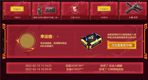 2、抽奖会活动一些分解道具,在暂存箱里面,除了王者-春、超级对讲机、超级护目镜,其他都可能重复抽到;