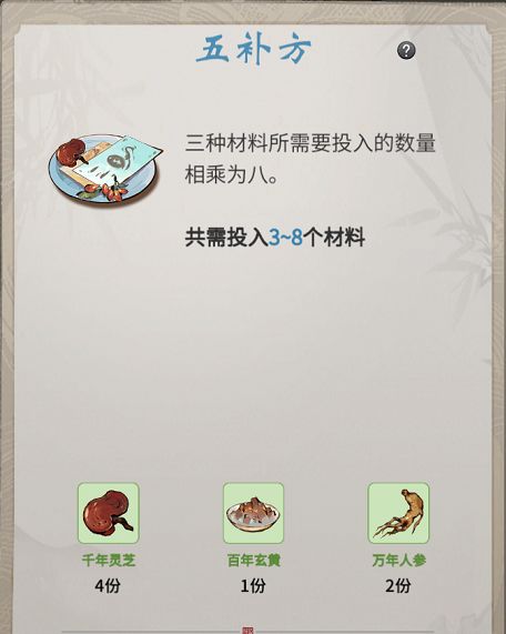 解密思路:三种材料平衡混合,每种药材数量都一样。